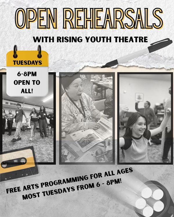 Rising Youth Theatre hosts open rehearsals most Tuesday evenings from 6:00 - 8:00pm in RYT's space at the Phoenix Center for the Arts room 304