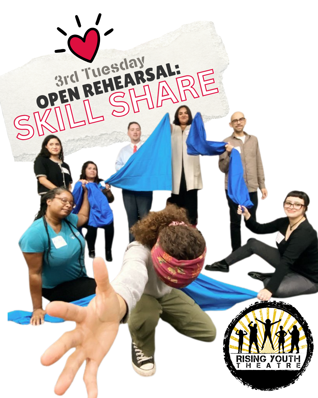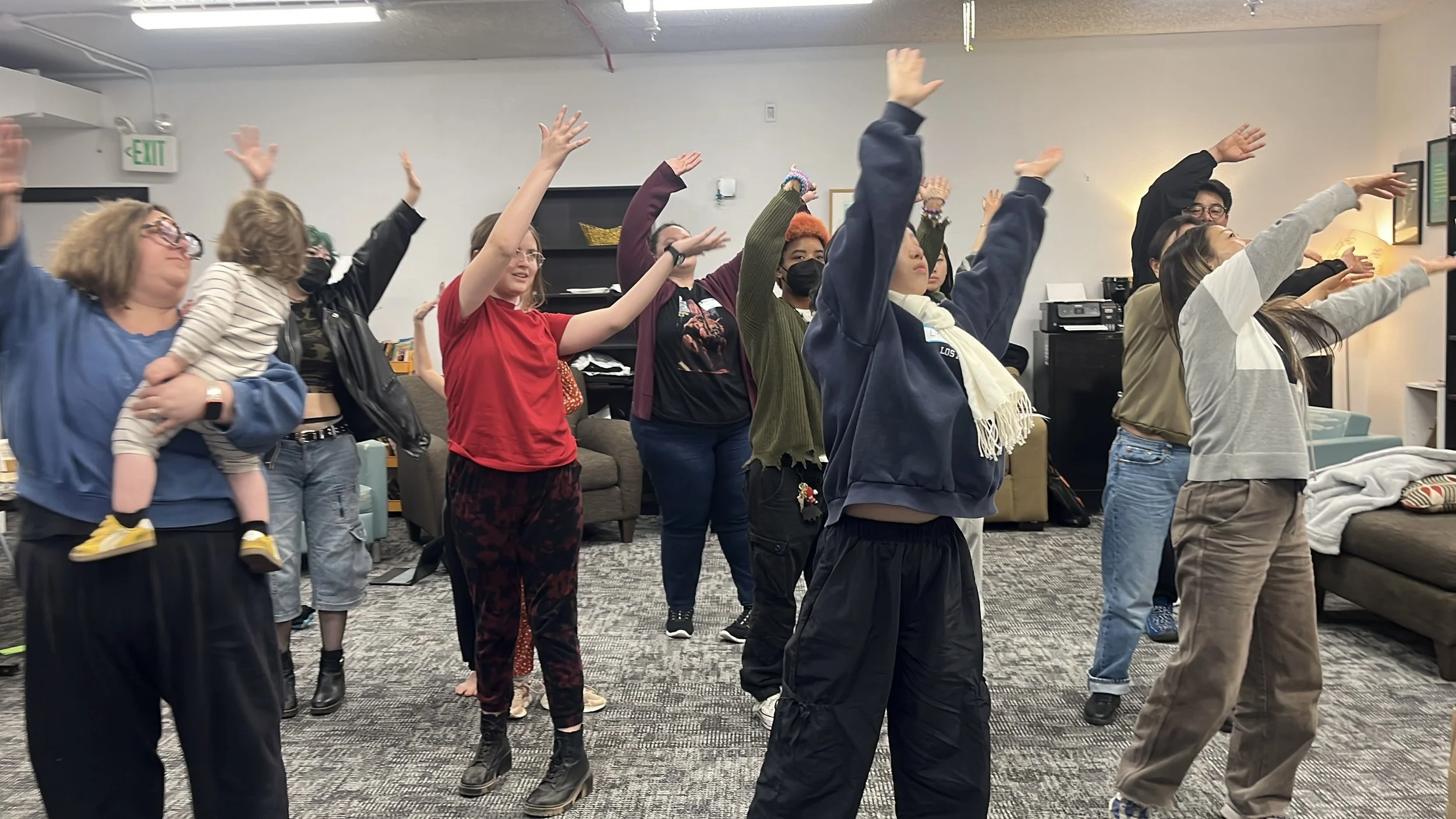 We want you to come join us in our space! Every second and third Tuesday from 6:00 - Rising Youth hosts and open rehearsal where people of all ages can come together to create, learn, and get connected with our work.