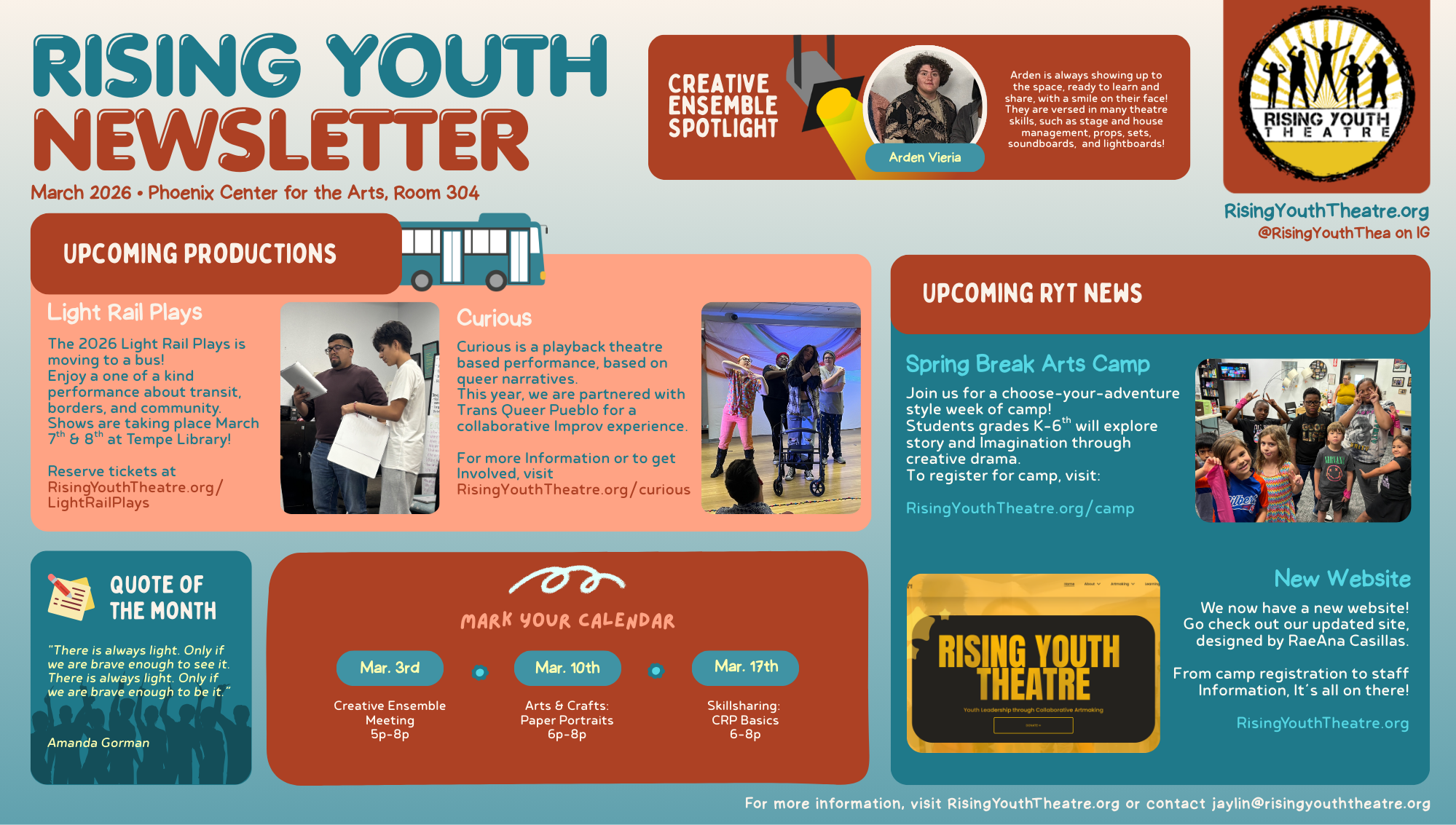 Join us in Rising Youth Theatre’s space at the Phoenix Center for the Arts in room 304